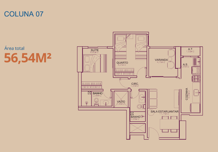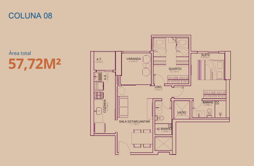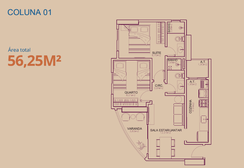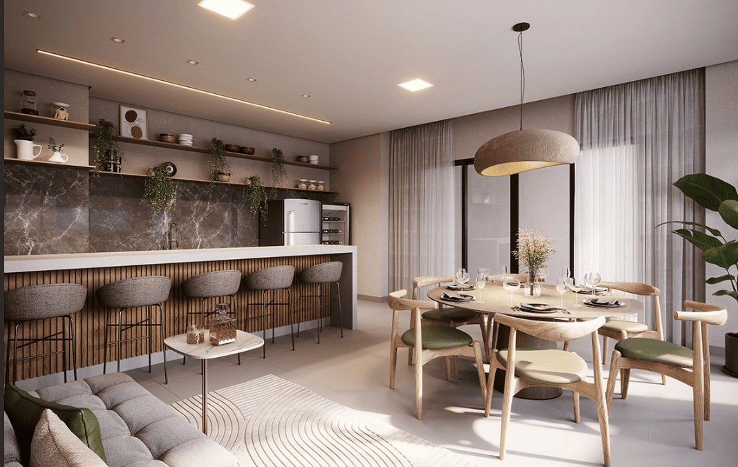 O empreendimento oferece apartamentos de 2 quartos, com tamanhos que variam de 56 m² a 123 m², e unidades a partir de R$ 496.250,00.